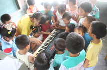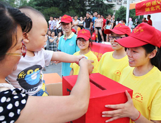 6月29日,為了更多的幫助到實踐地的留守兒童,湖北汽車工業(yè)學(xué)院外國語學(xué)院“V益·青竹”愛心支教服務(wù)團(tuán)分別在火車站、六堰廣場及人民公園附近義賣報紙,并于晚上19時在六堰廣場舉行了“一米陽光暖庸巴”愛心募捐活動;顒赢(dāng)日籌集到的1020元善款將全部為中原小學(xué)的留守孩子們購買書籍、文具等。