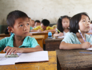 “V益·青竹”支教課堂上認(rèn)真聽講的留守兒童