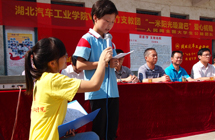 7月10日上午,湖北汽車工業(yè)學(xué)院“V益·青竹”暑期愛心支教團(tuán)的大學(xué)生們在蔣家堰鎮(zhèn)中原小學(xué)舉行愛心捐贈活動。湖北汽車工業(yè)學(xué)院副院長閔祖?zhèn)魍、縣教育局副局長周躍忠同志以及相關(guān)領(lǐng)導(dǎo)都趕來支持。