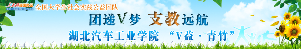 2013年,人民網(wǎng)招募50個大學(xué)生團(tuán)隊組成“全國大學(xué)生社會實踐公益團(tuán)隊”,走進(jìn)基層開展多種形式的支教助學(xué)、生態(tài)保護(hù)主題公益服務(wù)活動。隨著暑期到來,各團(tuán)隊已陸續(xù)開始活動,并將全過程通過大學(xué)生論壇進(jìn)行網(wǎng)絡(luò)直播。湖北汽車工業(yè)學(xué)院“V益·青竹”支教團(tuán)是50支重點團(tuán)隊之一,他們開展了愛心募捐和義賣活動、“支教路上共成長”支教活動、“我的V夢想”主題畫展暨文藝匯演、“團(tuán)遞V夢·支教遠(yuǎn)航”主題宣講會等實踐內(nèi)容,為社會做力所能及的貢獻(xiàn),用他們的行動為青春正能量加油!