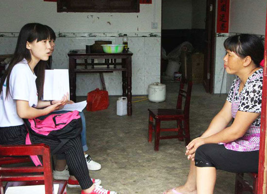 志愿者走訪村民做問卷調(diào)查