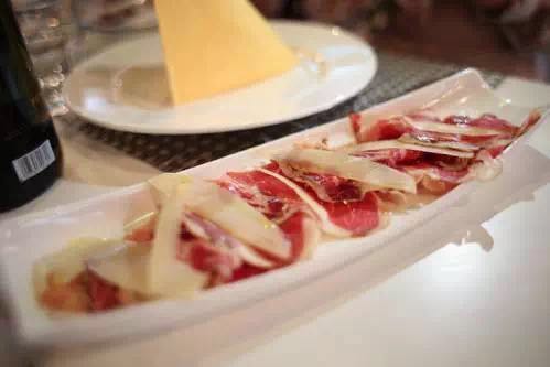 在意大利多種多樣的開胃菜中,Carpaccio是最傳統(tǒng)與常見的一種,“Carpaccio”是“生冷牛肉”的意思。帶血色的新鮮生牛肉切片平鋪在碟子上,牛肉片上擺放些芝士。Carpaccio的關鍵在于生牛肉,配菜則可以自由發(fā)揮。