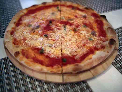 這款披薩來自意大利西西里島。采用厚實松軟的面團制作,并配以傳統(tǒng)的奶酪、番茄、洋蔥、續(xù)隨子、鳀魚。松軟的面團會吸收烤盤底部的橄欖油,從而形成一個輕脆焦香的底部而中間卻是柔軟有彈性的。