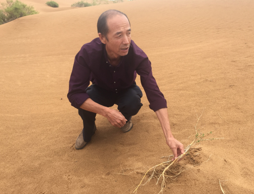 “我們每進(jìn)一步,沙丘就后退一步,F(xiàn)在我們看到的綠色帶,曾經(jīng)都是沙漠!痹谥紊硡^(qū),每一種植物他都如數(shù)家珍。他告訴記者,自己一輩子都在跟沙漠打交道,在探索中他發(fā)明了“便捷式沙漠造林器”。使用這種工具只需腳一踩就能輕松完成種植,以前每人每天種植200株,現(xiàn)在提升為400株,還保持了種子所需的水分。