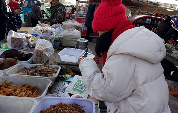 “小伙子,手機(jī)帶了嗎?掃一掃,你就用微信付款吧!”這是攤販大爺?shù)穆曇簟=K徐州市豐縣的“閆家小旭”對(duì)家鄉(xiāng)集市上菜攤前的二維碼,頗為吃驚,不敢相信。她說:“不到一年時(shí)間,發(fā)現(xiàn)家鄉(xiāng)變化真得好大。中國(guó)特色社會(huì)主義‘走進(jìn)新時(shí)代’,農(nóng)村里的樓房越蓋越高,院子也越來越寬敞。鄉(xiāng)間小道變成平整寬闊的水泥路,飛奔的火車也通往家鄉(xiāng)。手機(jī)支付走進(jìn)鄉(xiāng)間集市攤販,西紅柿、茄子、黃瓜、豆角等反季節(jié)蔬菜也成為春節(jié)餐桌上的家常菜!