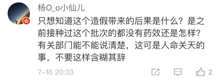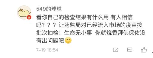 網(wǎng)友“楊O_o小仙兒”表示:“只想知道這個(gè)造假帶來(lái)的后果是什么?是之前接種過這個(gè)批次的都沒有藥效還是怎樣?有關(guān)部門能不能說清楚,這可是人命關(guān)天的事,不要這樣含糊其辭!