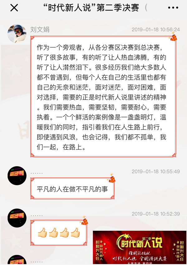 “每個人在生活里也都有無奈,面對迷茫,面對困難,需要的正是時代新人說里講述的精神。”網(wǎng)友劉文娟留言說。