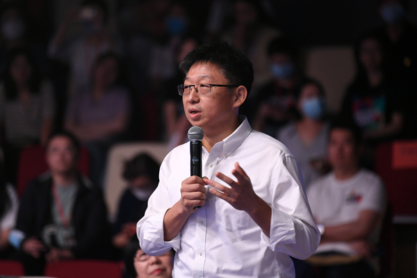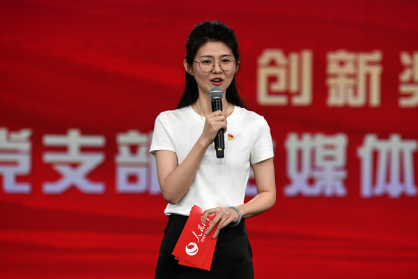 人民日報社機關(guān)黨委常務(wù)副書記魏建周向選手提問