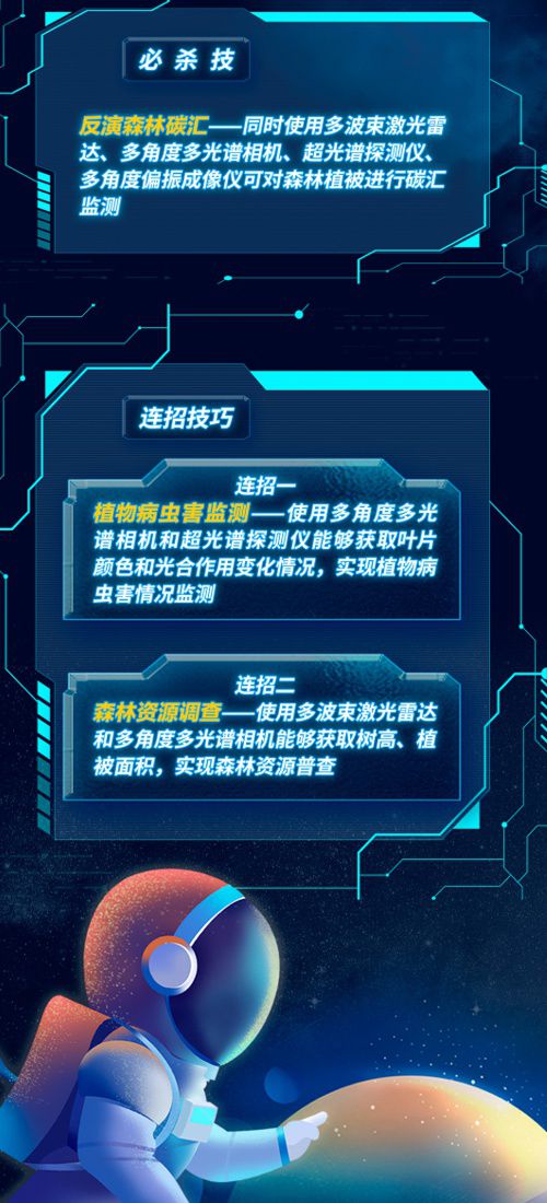 “森林碳匯監(jiān)測需要有高精度的植被數(shù)據(jù)作為支撐,為了達到這一要求,研制團隊創(chuàng)新性地將天基測繪‘激光雷達+光學相機’為代表的主被動聯(lián)合觀測手段應用到森林監(jiān)測中! 航天科技集團五院專家表示,通過衛(wèi)星獲取高精度數(shù)據(jù),對激光雷達和多光譜相機要求很高。衛(wèi)星研制團隊基于現(xiàn)有技術(shù)基礎(chǔ),設計出了天基森林碳匯監(jiān)測的“絕佳方案”:以激光雷達波束翻倍、重頻提升逾30倍,配置5個多光譜相機進行5角度綜合觀測。這種主被動聯(lián)合觀測模式,不僅充分發(fā)揮了激光雷達和多光譜相機的優(yōu)勢,同時還能利用激光校準多光譜相機精度,充分滿足了森林碳匯監(jiān)測的精度需求。