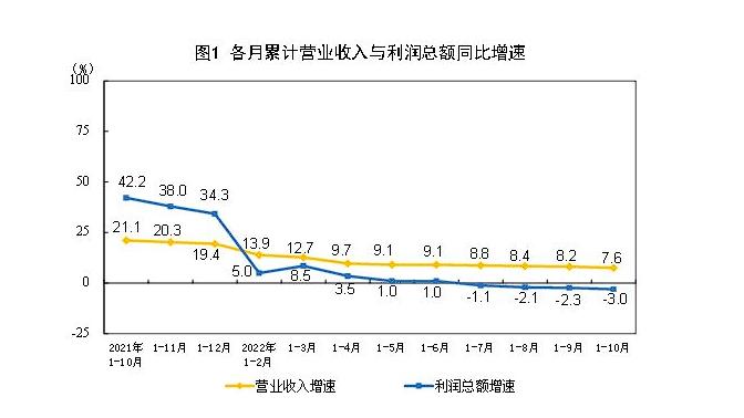 國家統(tǒng)計局數(shù)據(jù)顯示,今年前10個月,全國規(guī)模以上工業(yè)企業(yè)營業(yè)收入同比增長7.6%,利潤同比下降3%。國家統(tǒng)計局工業(yè)司高級統(tǒng)計師朱虹解讀工業(yè)企業(yè)利潤數(shù)據(jù)時表示,總體看,工業(yè)企業(yè)利潤下降,結(jié)構(gòu)繼續(xù)改善,部分中下游行業(yè)利潤回升明顯。但也要看到,近期國內(nèi)疫情散發(fā)多發(fā),世界經(jīng)濟衰退風險加劇,工業(yè)企業(yè)效益恢復面臨較大壓力。