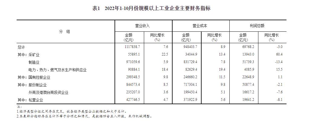 2022年1-10月規(guī)模以上工業(yè)企業(yè)主要財務(wù)指標。 國家統(tǒng)計局官網(wǎng)截圖